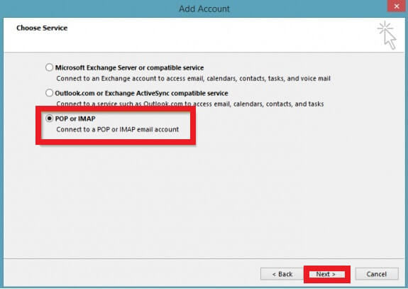 - After that, Choose POP or IMAP from the given options and then click on Next.